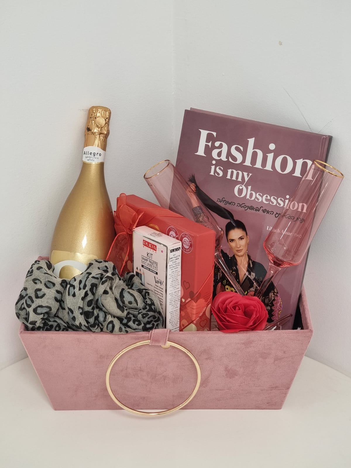 ❤️המארז כולל את הספר, קיט איפור, בקבוק שמפנייה +2 כוסות שמפנייה, מארז בונבוניירה,פרח ריחני בתוך קופסא מהודרת. ❤️המוצרים להמחשה בלבד